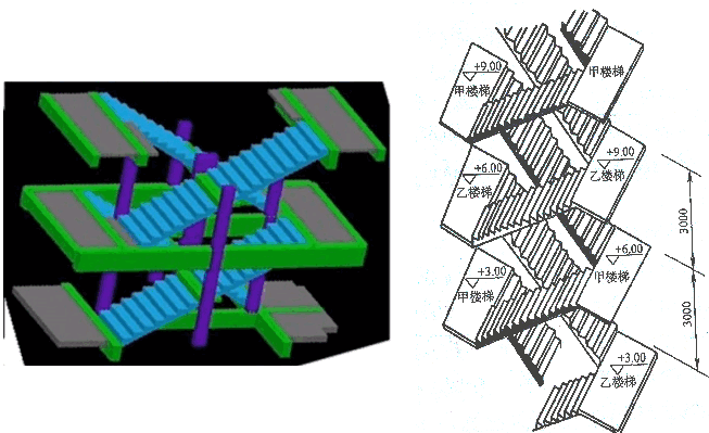 剪刀楼梯间 12 月8 剪刀楼梯间以前不熟悉,生活中好像也没有见到过。由于不做建筑,也没有去详查。 这次消防工程师考试学习中,看了课本及相关视频,才有了直观的认识。 课本定义: 剪刀楼梯,又称叠合楼梯或套梯,是在同一个楼梯间内设置了一对既相互交叉、又相互隔绝的疏散楼梯。其特点:同一个楼梯间内设有两部疏散楼梯,并构成两个出口,有利于在较为狭窄的空间内组织双向疏散。 重要的是图示: 其显著特征是:没有中间休息平台。